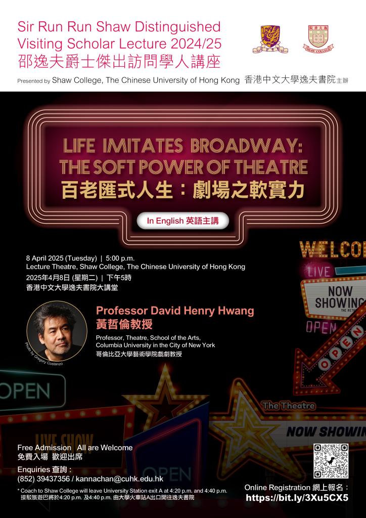 Shaw College students attending this lecture can have their attendance counted as fulfilment of 1 College Assembly requirement. Please register at the Registration and Attendance System: http://www.cuhk.edu.hk/ras